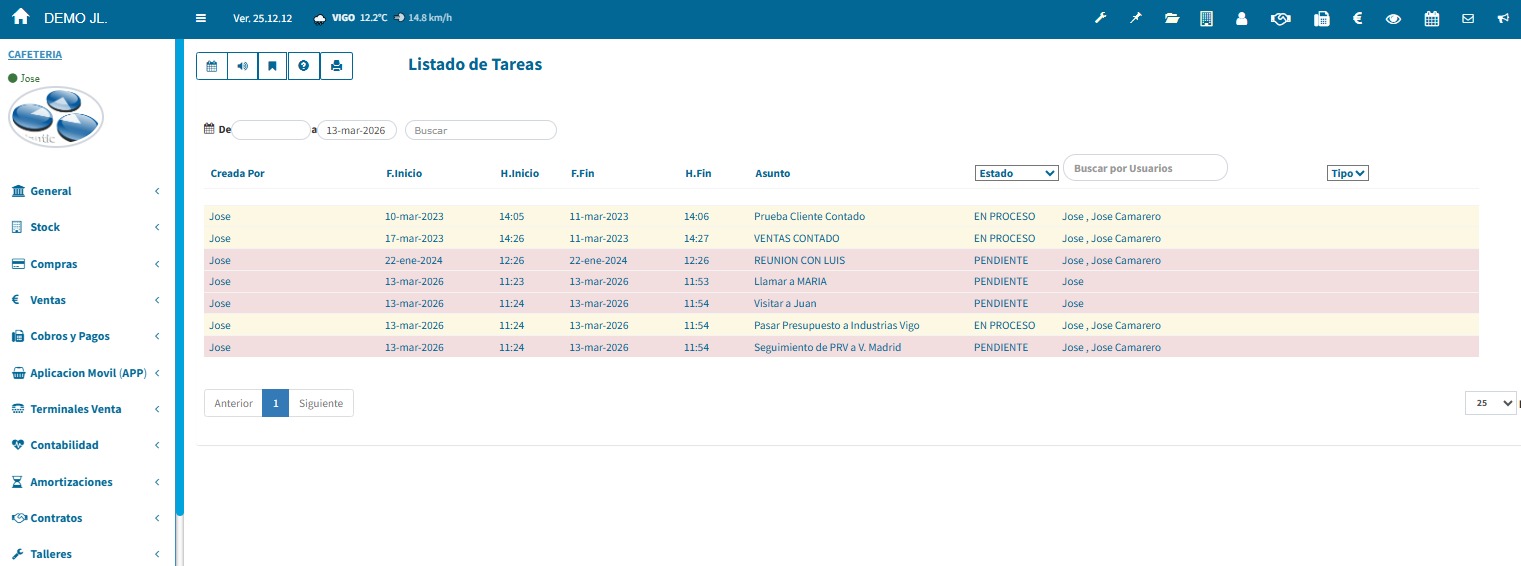 Crea y gestiona tareas directamente desde el calendario, facilitando el seguimiento de tus actividades diarias y mejorando la organización de tu tiempo.