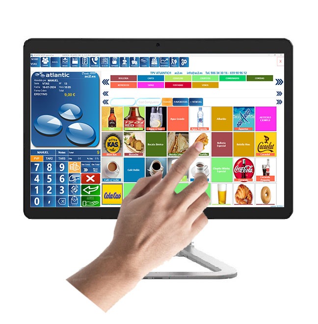 Gracias a nuestros equipos táctiles de hotelería (cafeterías, restaurantes, discotecas…) y comercio (centros de estética, supermercados, peluquerías…) podrás realizar cobros con total comodidad, sin ratones ni teclados de por medio.